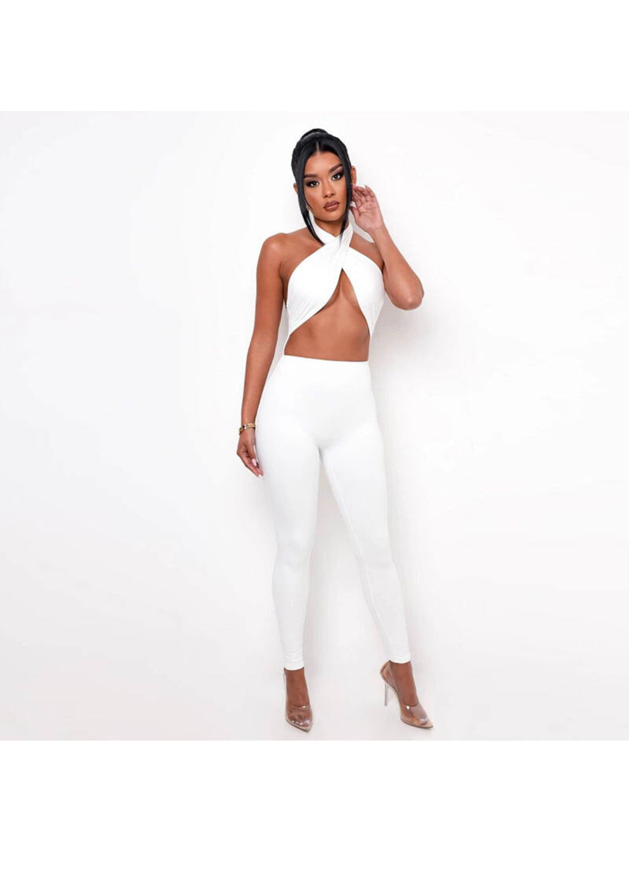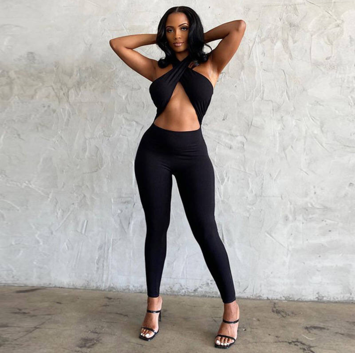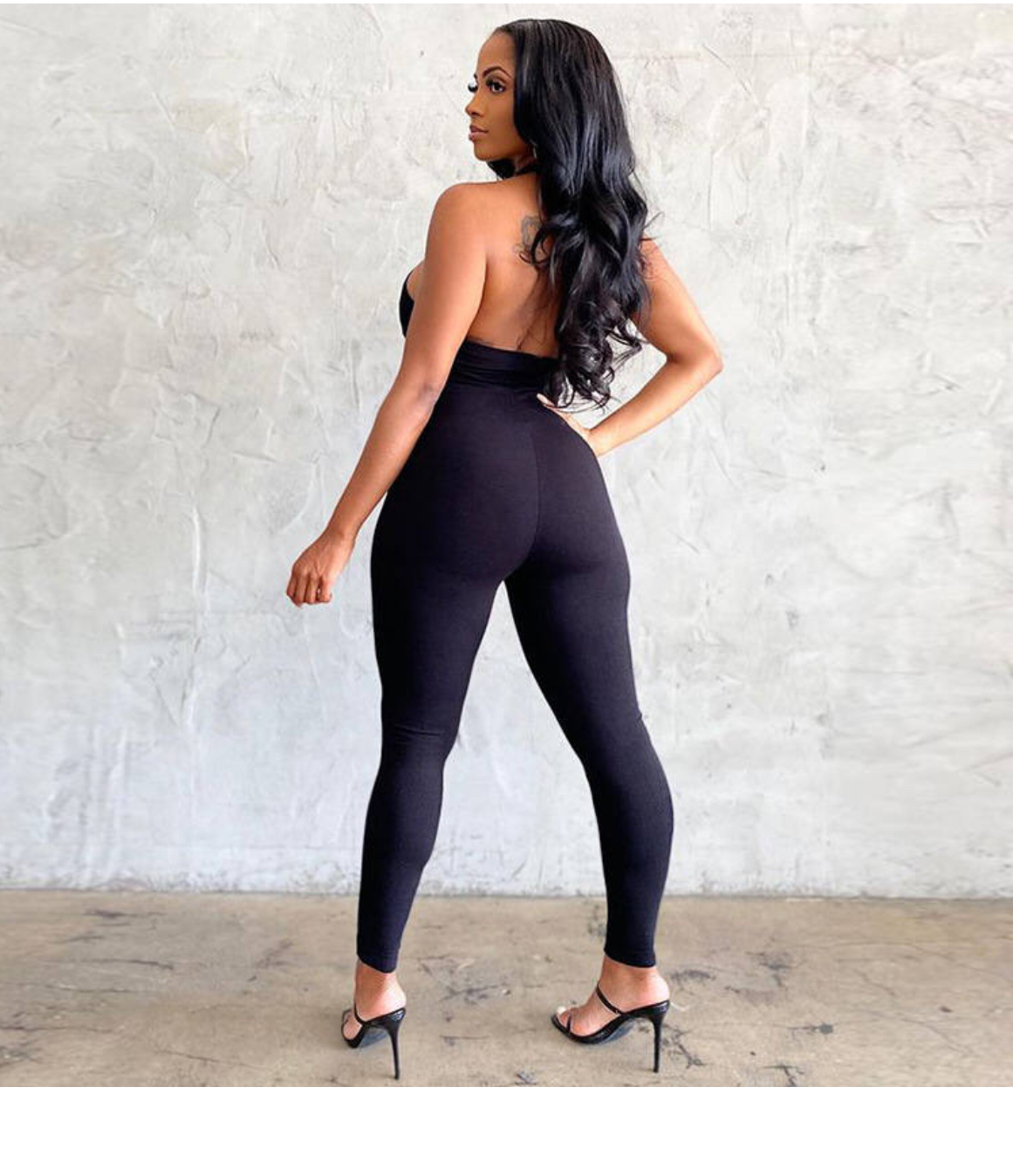 This jumpsuit let’s you show off some skin. Made up of Polyester and Spandex.
